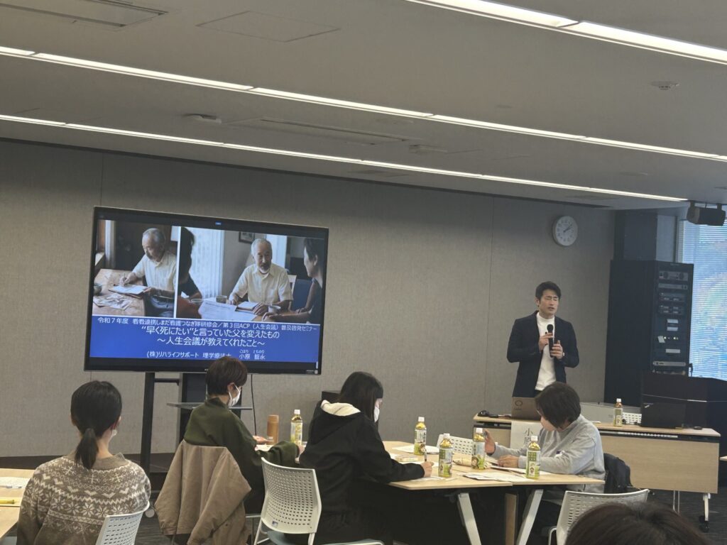 11月29日、看看連携しまだ 主催の「看護つなぎ隊研修会」および「第3回ACP普及啓発セミナー」において、当社リハライフサポートの小原が講師を務めました。