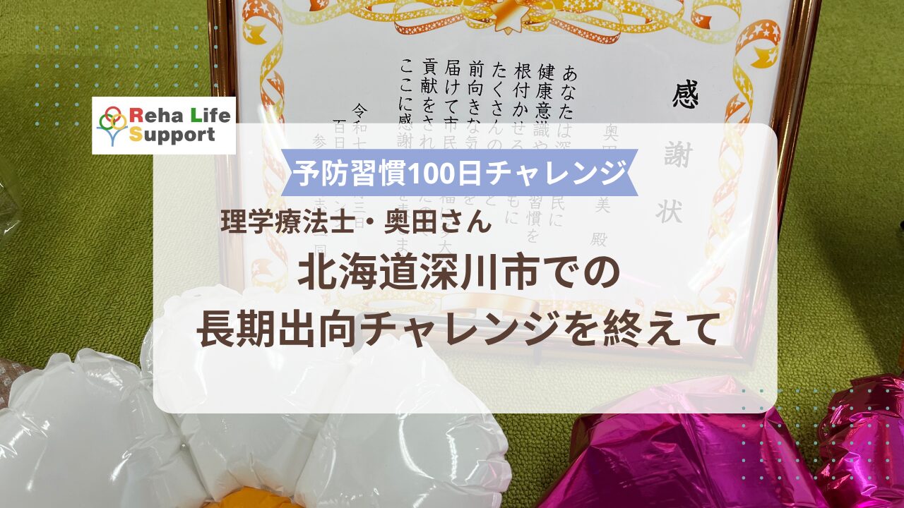 北海道深川市で開催された「予防習慣100日チャレンジ」(主催:コスモヘルスさん)にリハライフサポートは参画させていただいておりました。 今回リハライフサポートは、運動監修をさせていただき、さらに8月から10月までの約3か月間、長期出向という形で... -