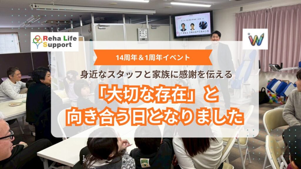 2026年2月8日、リハライフサポートは14周年を迎えました。そして、WonderSketch株式会社も1周年も迎えました。 今回は節目を祝うだけの場ではなく、日々ともに歩んできたスタッフ、そしてその歩みを陰で支えてきたご家族をお招きし、感謝を直接伝える時間...